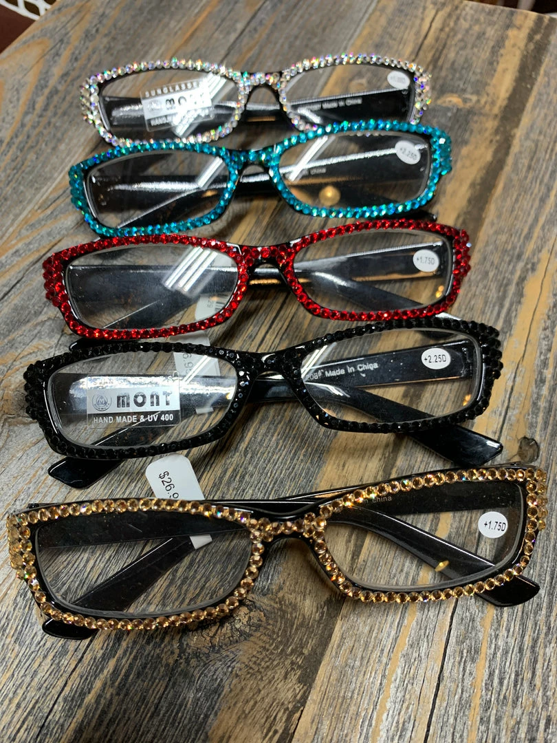 Bling reading glasses -various colors and strengths to choose from. ย If not in stock, text strength and color.ย