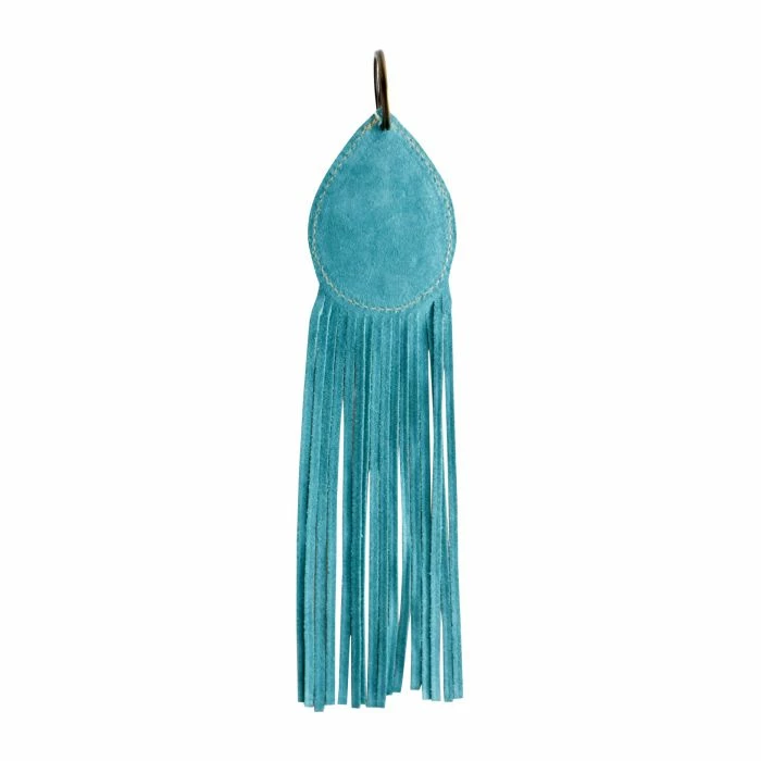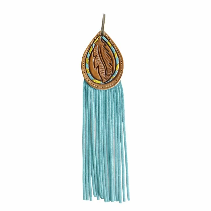 The leaf pattern surrounded by double-tinted yellow and turquoise boundary gives it a more alluring look. The tassels made from suede leather will make the key-fob easily noticeable.