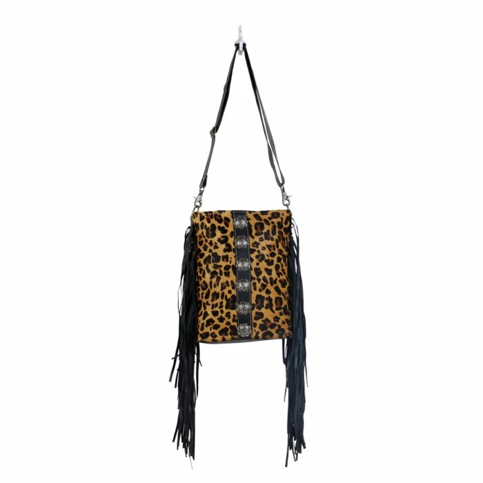 Sport the retro look with this hairon bag. Graced by beaded details in the middle of the bag and ruffles on each end, this bag is one of a kind.