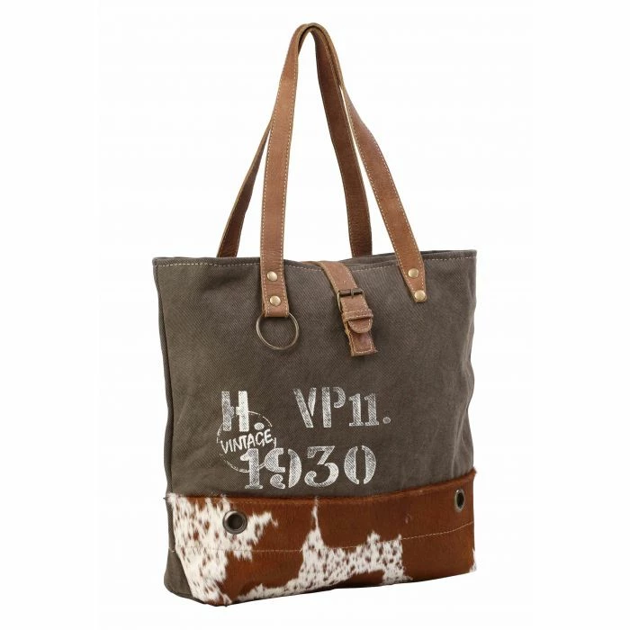 This vintage 1930 tote bag is the perfect to carry all your essentials. ItΒ is spacious, simple and chic. It is a pleasure to carry on your shoulder proportionately making it a style statement. It has flat genuine leather strap and hairon stripes in front on both the sides.