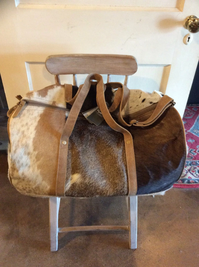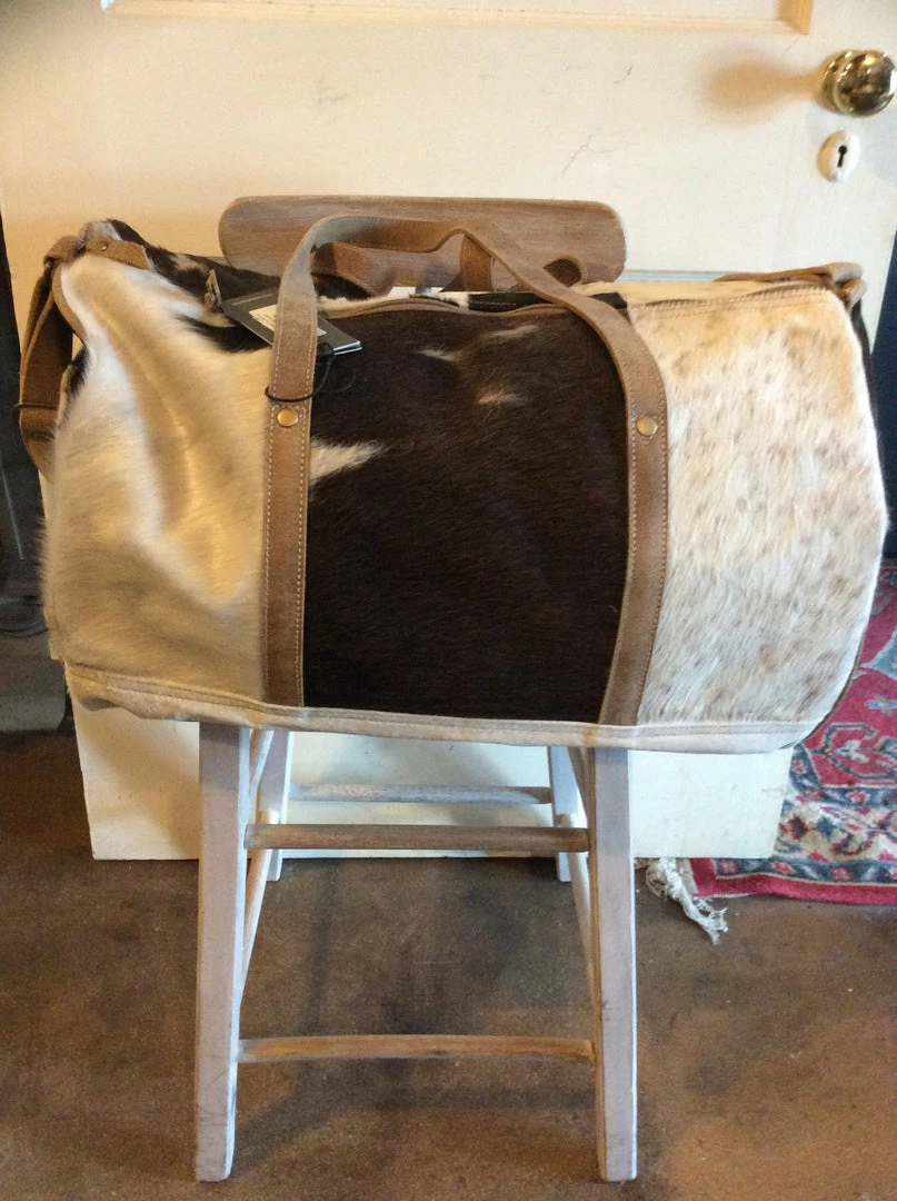 Made up of natural thick cowhide Leather. Strong stitching, handcrafted by professional artisans for long lasting durability that looks better with age. Shoulder straps and handle for use as a weekender travel bag or gym bag. It’s detachable and adjustable shoulder straps for added comfort. HAIR ON WILL VARY…