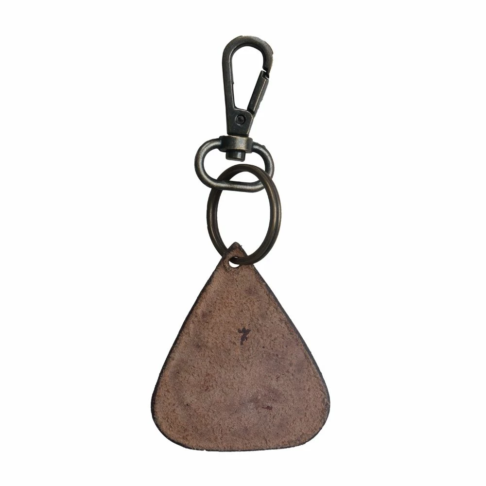 An elegant design of a turquoise colored flower engraved with hand tooling work. Outstanding brass hardware employed to give the keychain a resilient quality