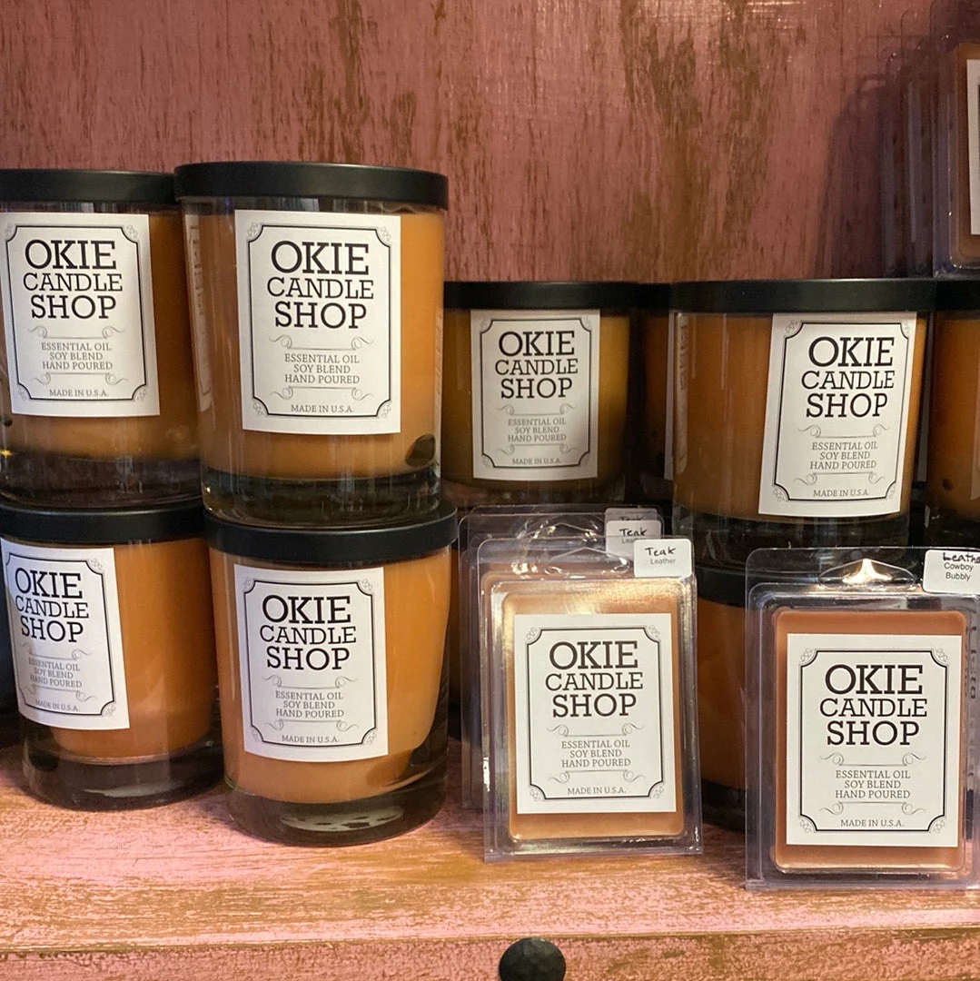 Brand new ๐ Okie Candle Shop Okie Teak Leather Candles & Melts Decor ๐ฅ