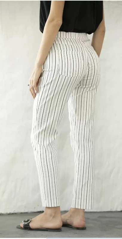Pull on ealstic waist pant.Β Slim fit and tapered ankle.