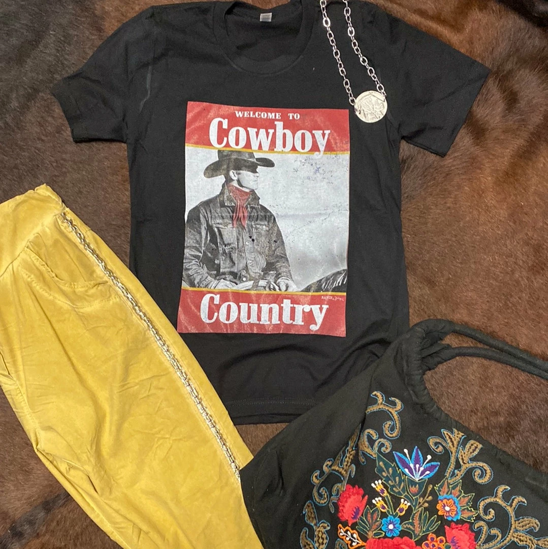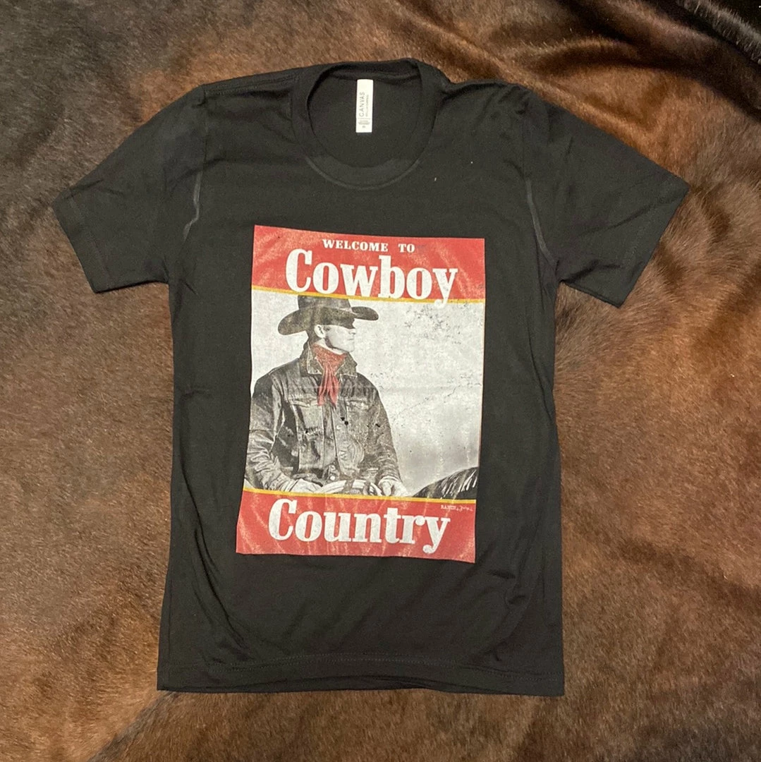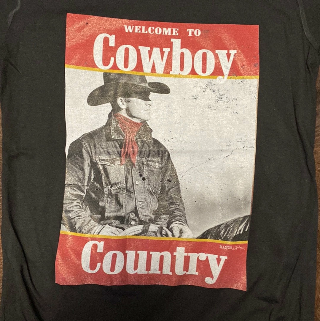 Custom printed “Cowboy Country” screen printed crew neck t-shirt.