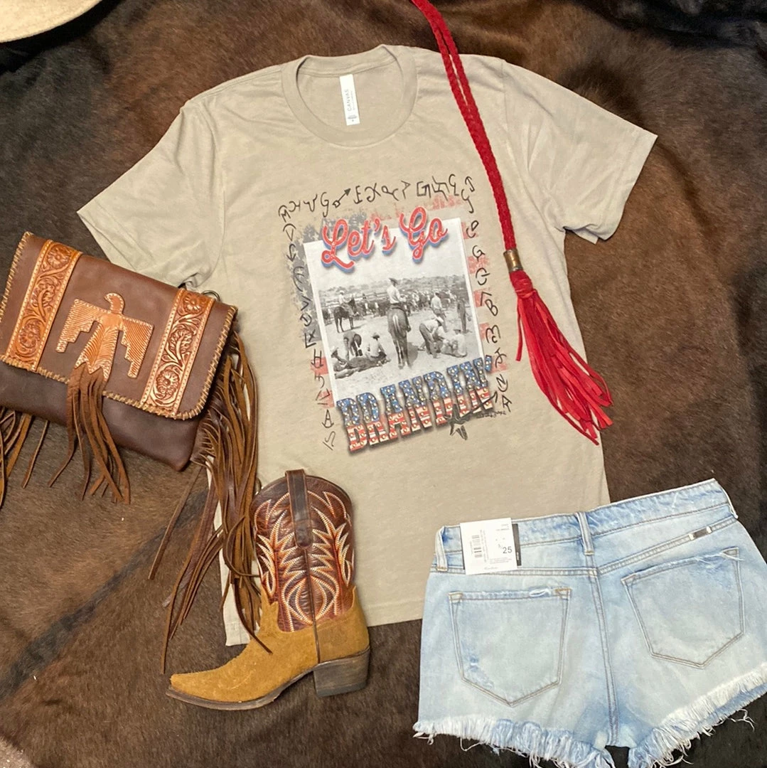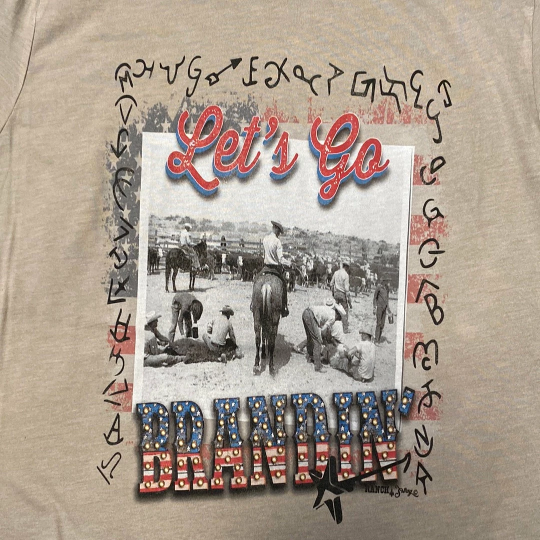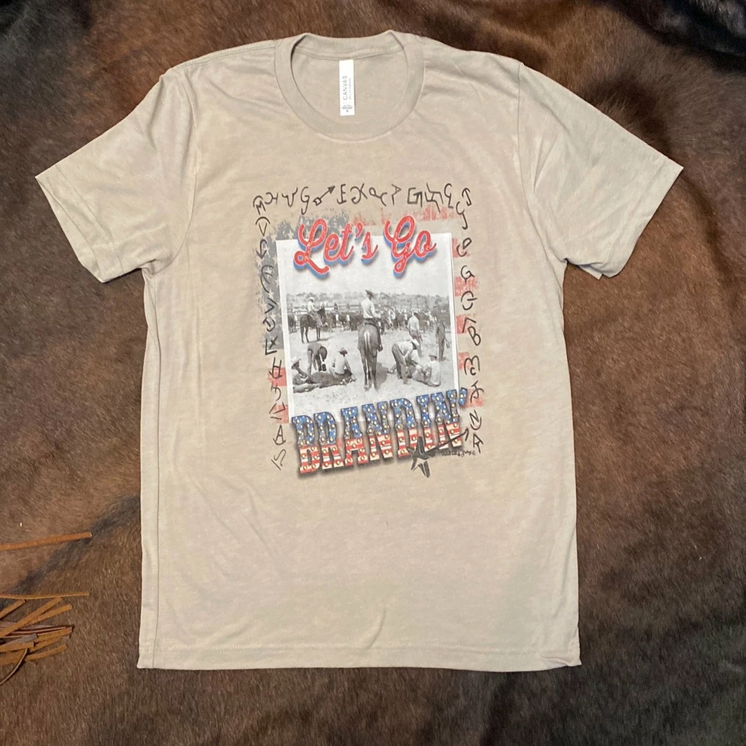A cheeky custom printed “Lets go brandin’ ” crew neck t-shirt.