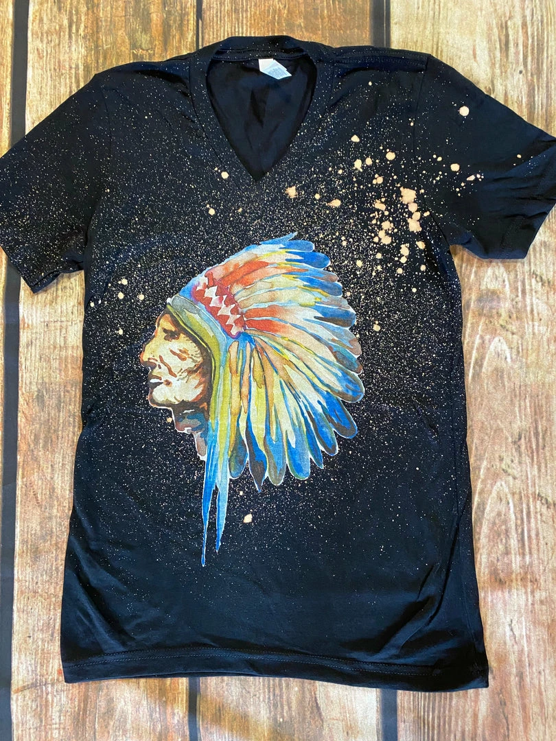 Watercolor Indian bleach Black Bella Canvas V-neck.