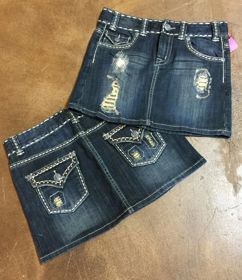 Rock and Roll Cowgirl Denim Mini with destressing and studs.ย Final Sale