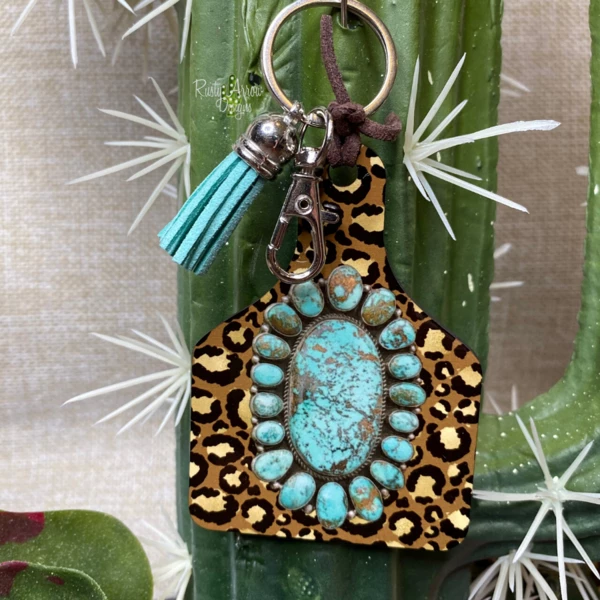 Cheetah Turquoise Stone Livestock Ear Tag Key chain