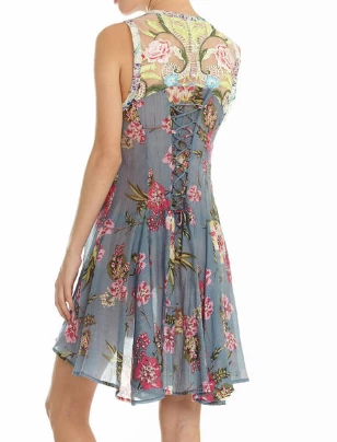 Ombre sheer fabric overlaid with embroidered flowers. The back features a lace up corset design with more beautiful florals on back. Pair with your favorite pair of jeans or leggings.