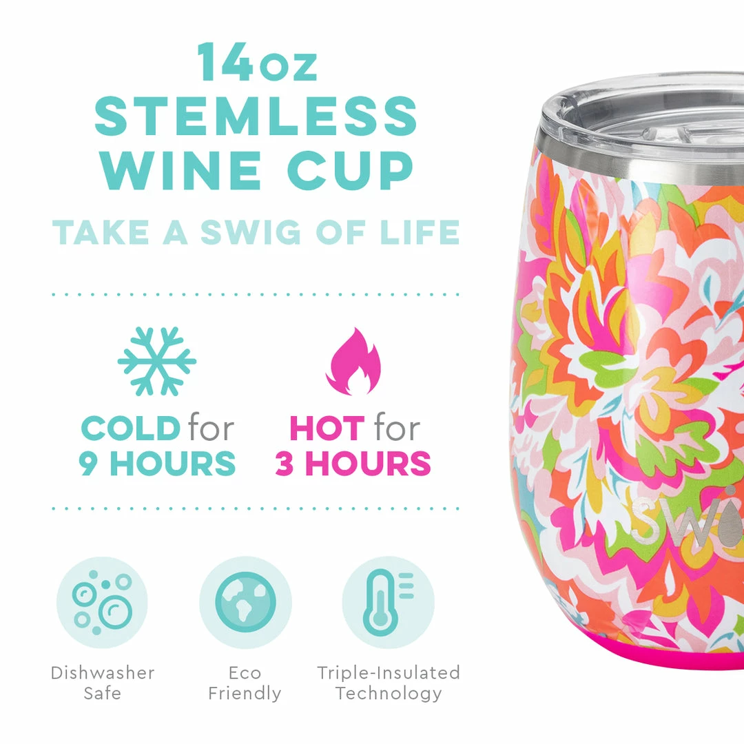 Our triple insulation technology allows our top-selling stemless wine cups to keep drinks cold up to 9 hours and hot up to 3 hours. Their unbreakable construction makes them perfect for enjoying chilled wine or cocktails by the pool, hot tea in the morning or even ice cream sundaes before bed (Swig calories don’t count!)