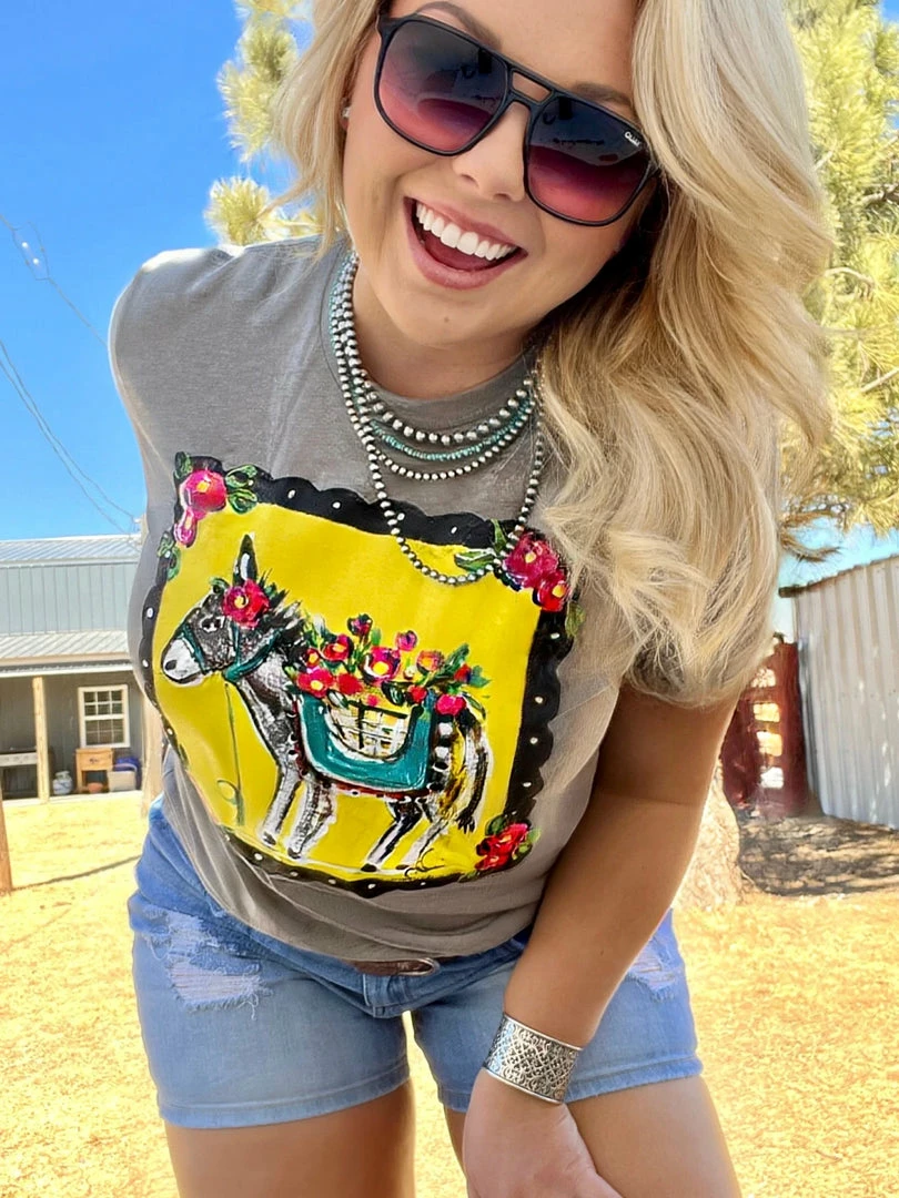 Love this fun, bright, hand painted burro surrounded by beautiful flowers!ย