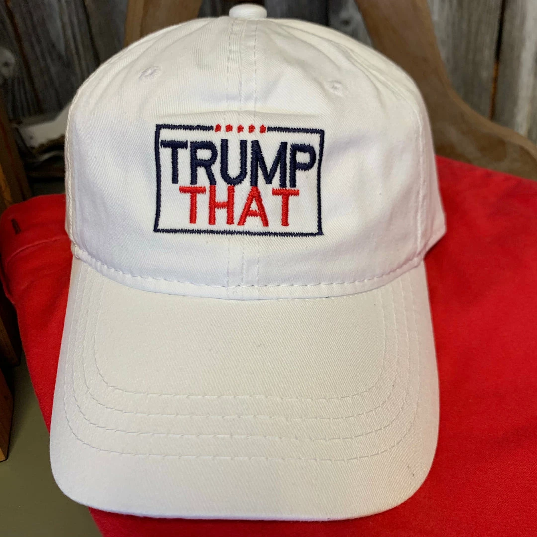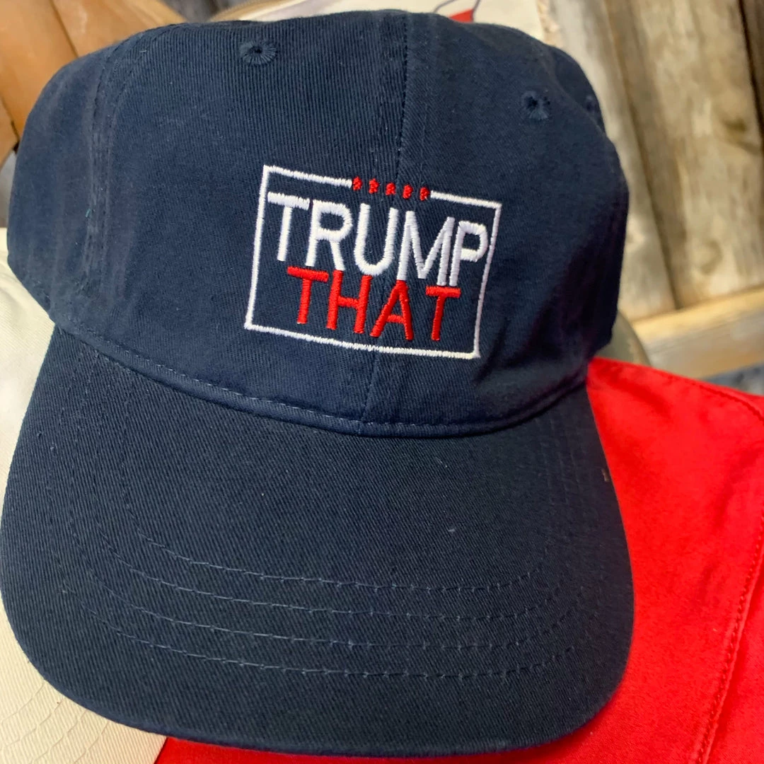 Patriotic Trump That Cap with embroidery.ย Comes in blue and white.