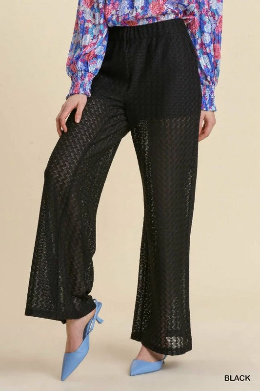New 💯 Umgee Sheer Elastic Waist Lace Detail Palazzo Pants ✨